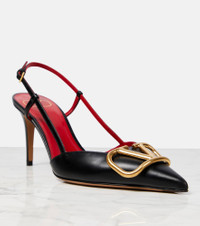 These leather slingback pumps from Valentino Garavani evoke a sense of classic glamour. Made in Italy, they are set on 80mm heels and feature pointed toes adorned with embellished VLogo Signature hardware. Product Details - Lining: leather - Sole: leather insole and sole - Toe shape: pointed toe - Upper: leather - Comes with dust bags - Designer color name: Nero - Closure: buckle-fastening ankle strap - Comes with a box - Made in Italy - Item number: P00772154 Size & Fit - True to size - European sizes - 8cm-3" heel (size EU 38)