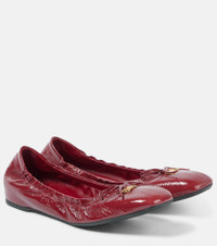 VLOGO bow-embellished crinkled patent-leather ballet flats