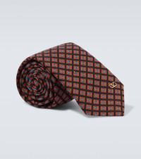 Embrace timeless sophistication with this tie from Valentino Garavani. Crafted from silk jacquard, the design features a charming print and the house's signature VLogo hardware. Product Details - Material: 63% cotton, 37% polyester - Care instructions: dry clean - Made in Italy - Designer color name: Nero-Azzurro-Arancione/Oro - Item color: black, orange - Includes: dust bag - Item number: P01134977 Size & Fit - Max. width 7cm-3"