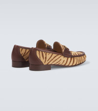 Logo-Embellished Leather-Trimmed Tiger-Print Calf Hair Loafers Brown