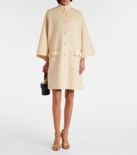 Crafted from a soft wool and cashmere blend, this Valentino coat is a charming wardrobe staple. The single-breasted design is accented with bow details and finished with refined patch pockets. Product Details - Material: 90% wool, 10% cashmere - Care instructions: dry clean - Made in Italy - Designer color name: Betulla - Item color: white - Trim: 100% acetate - Closure: single-breasted - Pockets: patch pockets - Item number: P01059626 Size & Fit - True to size - Oversized - Non-stretchy fabric - The model seen in the picture is 178cm-5'10" and wearing a size IT 40