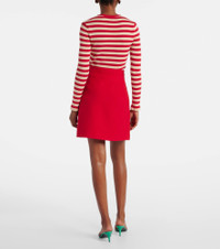 Valentino's signature Crepe Couture fabric – a luxurious wool and silk blend – provides structure and a beautiful drape. This miniskirt is designed with a side zip closure, and the two welt pockets are embellished with jewel buttons. Product Details - Material: 65% wool, 35% silk - Care instructions: dry clean - Made in Italy - Designer color name: Paris - Item color: red - Lining: 75% acetate, 25% silk - Closure: zipped side - Pockets: patch pockets - Fully lined - Item number: P01059861 Size & Fit - True to size - Non-stretchy fabric - High-waisted - The model seen in the picture is 178cm-5'10" and wearing a size IT 40
