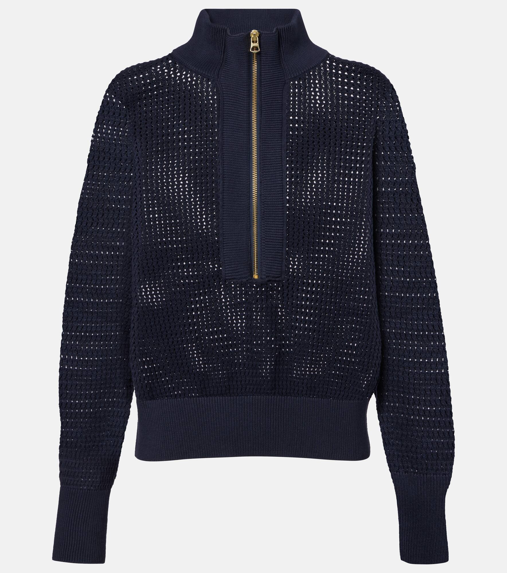 Take a modern approach to knitwear with this Varley half-zip sweater. Knitted from lightweight cotton threads, the piece features an open-knit design and a slightly oversized fit. Product Details - Material: 100% cotton - Care instructions: machine wash at 30 degrees - Made in China - Designer color name: Blue Nights - Item color: blue - Closure: partially zipped front - Elasticated waistband - Item number: P01062371 Size & Fit - True to size - Designed for a loose fit - Elasticated hem - Stretchy fabric - Falls to the hip - The model seen in the picture is 178cm-5'10" and wearing a size XS