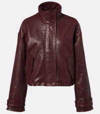 Veronica Beard's low-effort, high-impact separates find the perfect balance between casual and chic. The Bateman jacket is crafted from supple leather and boasts a cropped silhouette with an adjustable drawstring at the hem. Product Details - Material: 100% lamb leather - Care instructions: specialist clean - Made in China - Designer color name: Raisin - Item color: burgundy - Lining: 100% viscose - Closure: two-way zipped front with snap-button fastenings - Cuff: buttoned - Drawstring at the hem for adjustable fit - Pockets: snap-buttoned pockets - Item number: P01096288 Size & Fit - True to size - Dropped shoulders - Designed for a loose fit - Adjustable hem - Non-stretchy fabric - Slightly cropped - The model seen in the picture is 178cm-5'10" and wearing a size XS