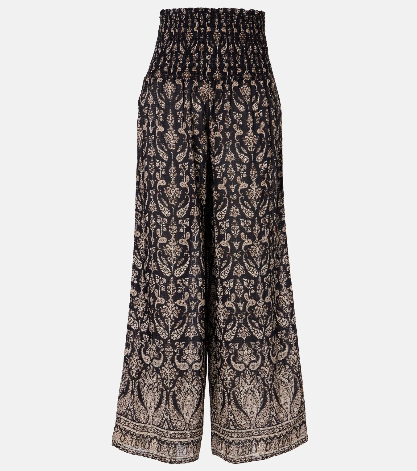 Veronica Beard's low-effort, high-impact separates find the perfect balance between casual and chic. The Callaway pants are cut from lightweight fabric to a classic wide-leg silhouette with a shirred waist for a comfortable fit. Product Details - Material: 70% viscose, 30% cotton - Care instructions: dry clean - Made in India - Color: black - Designer color name: Black Multi - Item color: black, beige - Elasticated waistband - Item number: P01142672 Size & Fit - True to size - Elasticated waist - Non-stretchy fabric - Wide-leg - High-waisted - The model seen in the picture is 178cm-5'10" and wearing a size XS