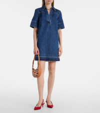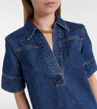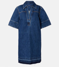 Veronica Beard's low-effort, high-impact separates hit the sweet spot between casual and chic. This denim shirt dress features a straight silhouette with a buttonless placket, pointed collar, and frayed hem for a charming finish. Product Details - Material: 100% cotton - Care instructions: machine wash cold - Made in China - Designer color name: Stoned Bright Blue - Item color: blue - Collar: V-neck - Sleeves: short-sleeved - Item number: P01097273 Size & Fit - True to size - Designed for a loose fit - Non-stretchy fabric - The model seen in the picture is 178cm-5'10" and wearing a size XS