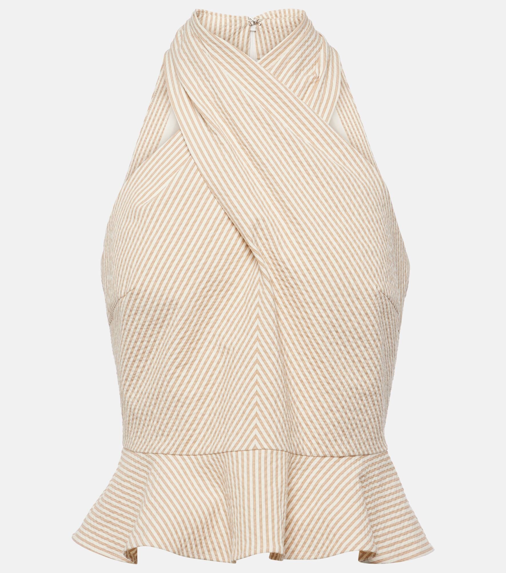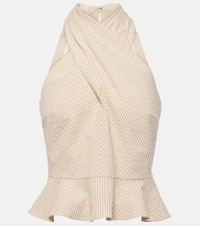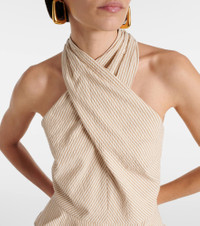 Drey halterneck striped cotton-blend seersucker top
