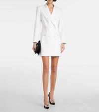 Product Details - Material: 63% polyester, 27% viscose, 7% cotton, 3% elastane - Care instructions: dry clean - Made in the USA - Designer color name: Off White - Closure: double-breasted (six buttons) - Lining: 100% polyester - Pockets: flap pockets - Item number: P00991795 Size & Fit - True to size - Shoulder pad inserts - Cinched waist - Non-stretchy fabric - Falls below the hip - The model seen in the picture is 178cm-5'10" and wearing a size US 4