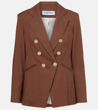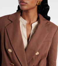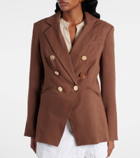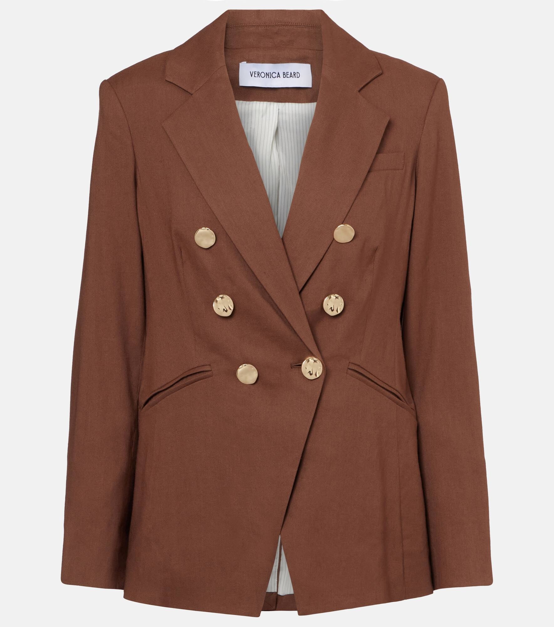 Veronica Beard's low-effort, high-impact Elle Dickey blazer hits the sweet spot between casual and chic. Cut from a linen blend to a double-breasted silhouette, this smart style is accented by gold-toned buttons. Product Details - Material: 55% linen, 44% viscose, 1% elastane - Care instructions: dry clean - Made in Vietnam - Designer color name: Light Chicory - Item color: brown - Lining: 95% polyester, 5% elastane - Closure: double-breasted - Hardware color: gold - Item number: P01067020 Size & Fit - True to size - Shoulder pad inserts - Cinched waist - Non-stretchy fabric - Falls below the hip - slit length 20cm-8" - The model seen in the picture is 178cm-5'10" and wearing a size US 4