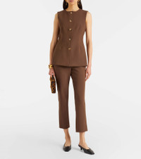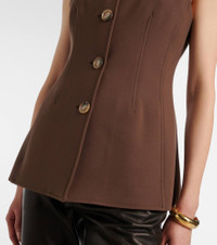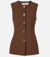 Veronica Beard's low-effort, high-impact separates find the perfect balance between casual and chic. Cut from soft tailoring fabric, the Jessup vest is a minimalist design with a high neckline and a nipped-in waist. Product Details - Material: 63% polyester, 27% viscose, 7% cotton, 3% elastane - Care instructions: dry clean - Made in the USA - Color: brown - Designer color name: Walnut - Item color: brown - Lining: 100% polyester - Closure: buttoned front - Item number: P01142621 Size & Fit - True to size - Cinched waist - Non-stretchy fabric - Falls below the hip - The model seen in the picture is 178cm-5'10" and wearing a size US 4