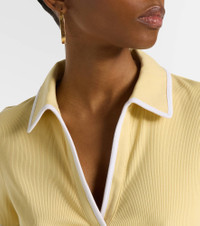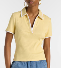 The Kearney polo shirt from Veronica Beard offers a polished take on a sporty design. Crafted from ribbed-knit stretchy cotton, this style features white contrast piping along the armholes, collar, and neckline. Product Details - Material: 96% cotton, 4% elastane - Care instructions: machine wash cold - Made in Vietnam - Designer color name: Chamomile - Item color: yellow - Collar: one-piece - Item number: P01083791 Size & Fit - True to size - Cinched waist - Stretchy fabric - Slightly cropped - The model seen in the picture is 178cm-5'10" and wearing a size XS