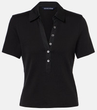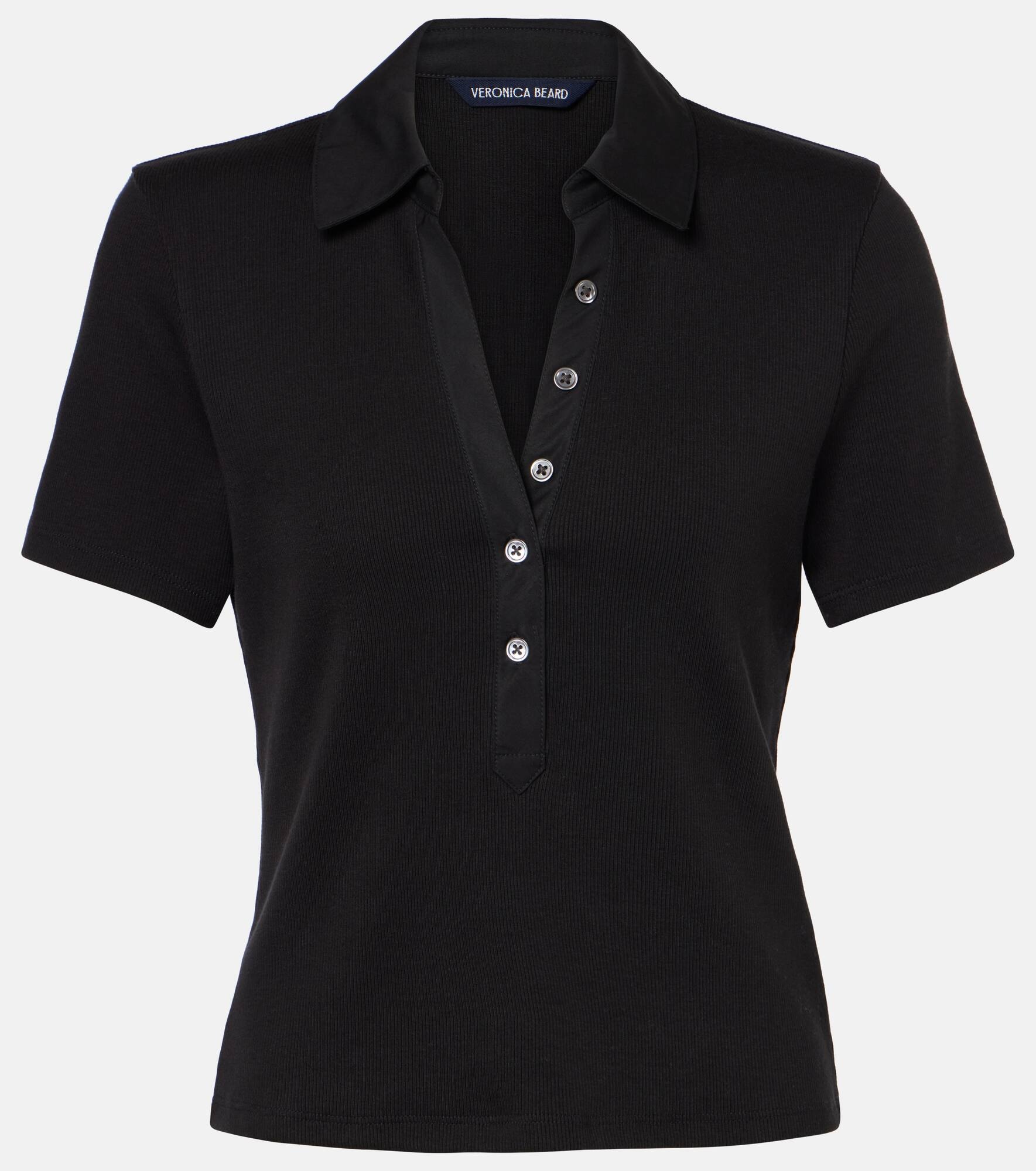 Product Details - Material: 97% cotton, 3% elastane - Care instructions: machine wash at 30 degrees - Made in Peru - Designer color name: Black - Closure: partially buttoned front - Collar: polo collar - Sleeves: short-sleeved - Item number: P01015894 Size & Fit - True to size - Cinched waist - Stretchy fabric - Slightly cropped - The model seen in the picture is 178cm-5'10" and wearing a size XS