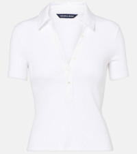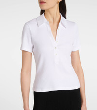 Product Details - Material: 97% cotton, 3% elastane - Care instructions: machine wash at 30 degrees - Made in Peru - Designer color name: White - Closure: partially buttoned front - Collar: polo collar - Sleeves: short-sleeved - Item number: P01015895 Size & Fit - True to size - Cinched waist - Stretchy fabric - Slightly cropped - The model seen in the picture is 178cm-5'10" and wearing a size XS