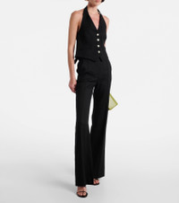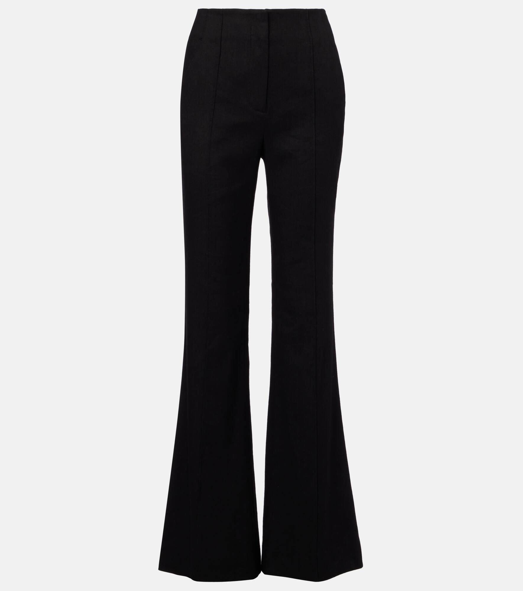 The Komi pants from Veronica Beard feature a fluid, flared silhouette, complemented by a high-rise waist and pressed creasing down the front. The design is complete with side-slit pockets for an effortless look. Product Details - Material: 55% linen, 44% viscose, 1% elastane - Care instructions: dry clean - Made in Vietnam - Designer color name: Black - Item color: black - Pockets: side slit pockets, back pockets - Closure: zip, hook, and button fastening - Lining: 100% polyester - Item number: P01067092 Size & Fit - True to size - Non-stretchy fabric - Slim-leg with a flared hem - High-waisted - The model seen in the picture is 178cm-5'10" and wearing a size US 4