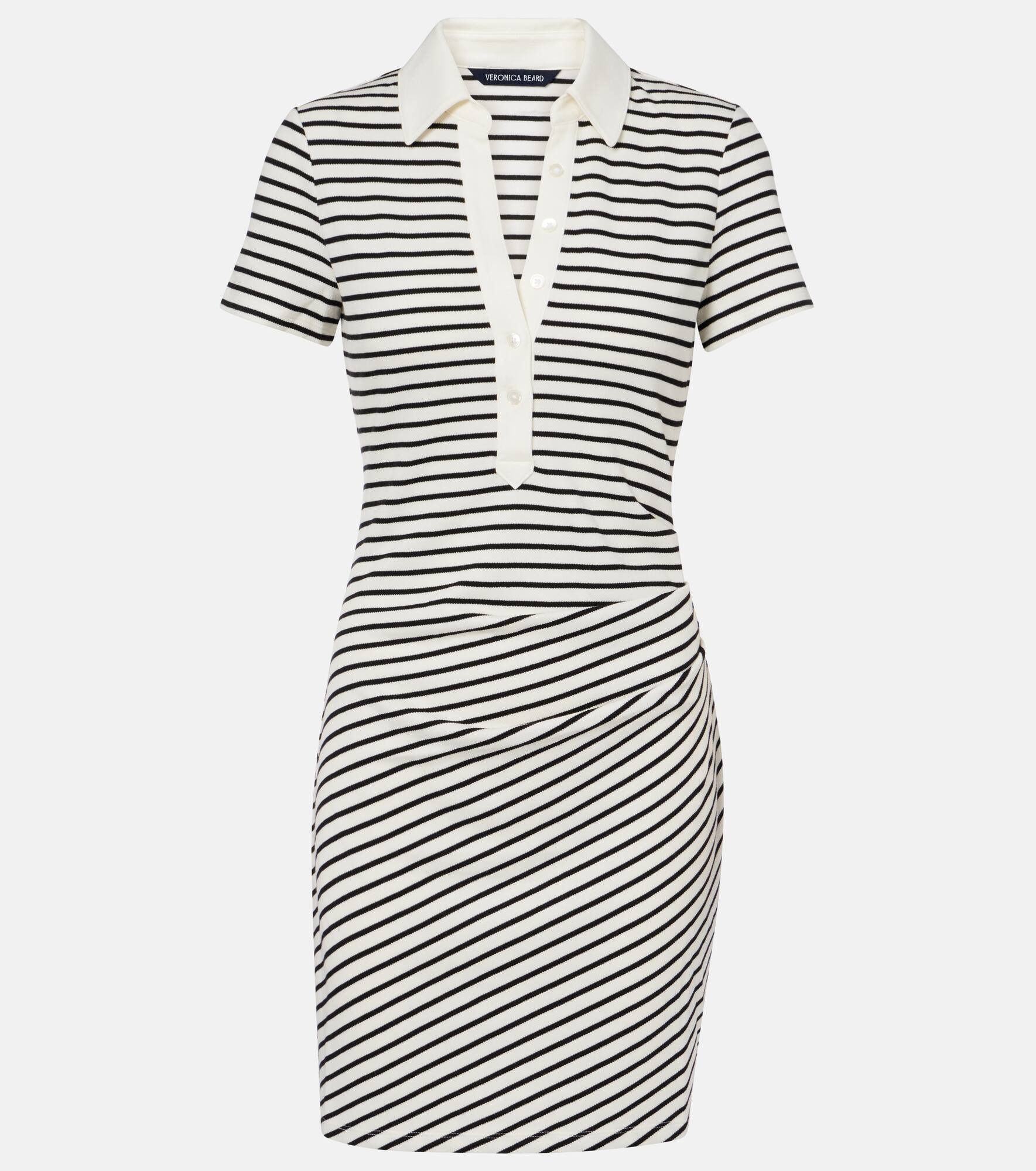 The Lanier minidress from Veronica Beard features classic stripes, a polo collar, and a partially buttoned front, blending preppy structure with a slim silhouette for an effortless everyday look. Product Details - Material: 50% polyester, 26% cotton, 24% rayon - Care instructions: machine wash at 30 degrees - Made in Vietnam - Designer color name: Dove/Black - Item color: white, black - Closure: partially buttoned front - Collar: polo collar - Item number: P01083745 Size & Fit - True to size - Cinched waist - Slightly stretchy fabric - The model seen in the picture is 178cm-5'10" and wearing a size XS