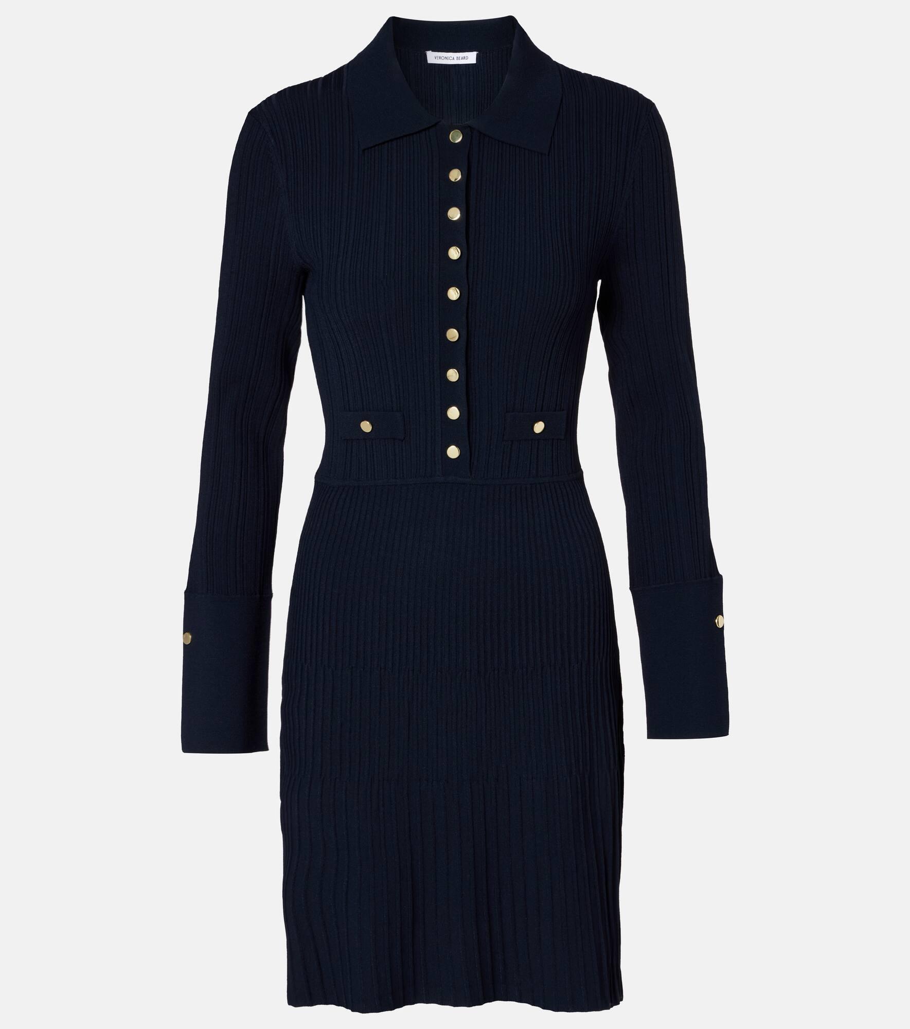 Veronica Beard's low-effort, high-impact separates hit the sweet spot between casual and chic. This Lauper minidress showcases a ribbed-knit finish and a sleek collar that opens into a half-placket of gold-toned buttons. Product Details - Material: 60% viscose, 22% nylon, 14% polyester, 4% elastane - Care instructions: dry clean - Made in China - Designer color name: Navy - Item color: blue - Hardware color: gold - Collar: polo collar - Closure: partially buttoned front - Pockets: faux pockets - Cuff: one button - Item number: P01096281 Size & Fit - True to size - Cinched waist - Stretchy fabric - The model seen in the picture is 178cm-5'10" and wearing a size XS