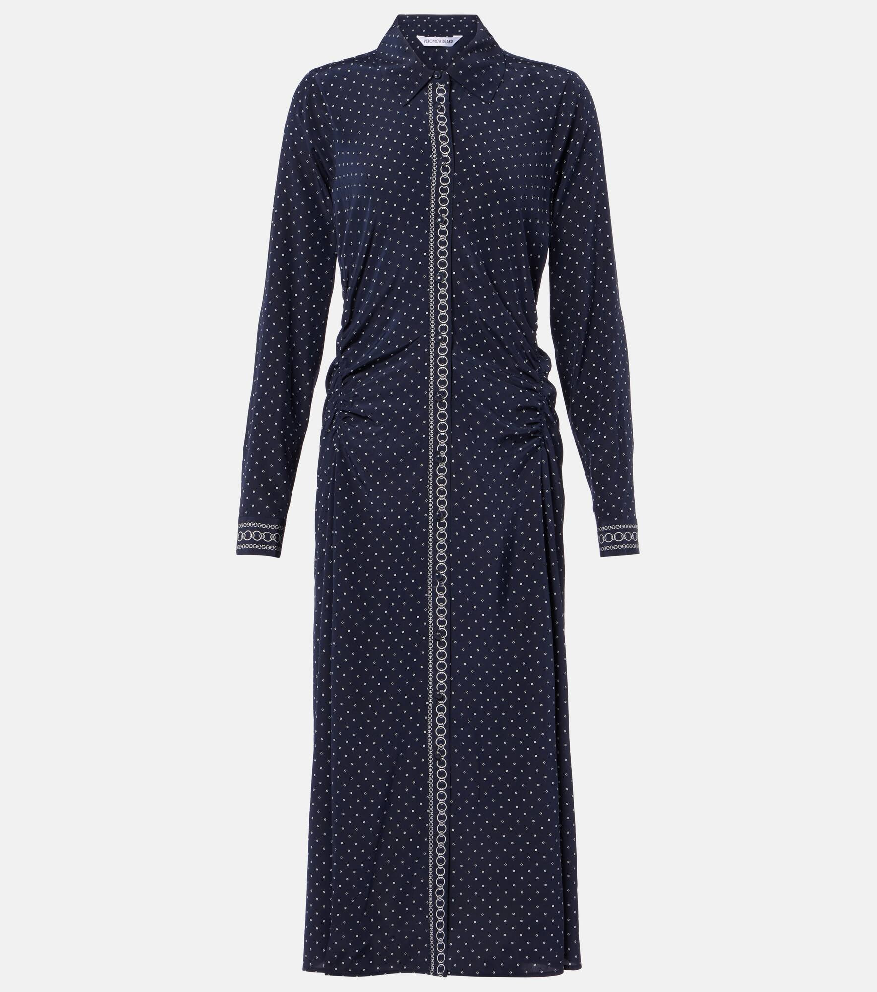 The Lex shirt dress can be worn casually or elegantly, depending on the occasion, and will always exude elegance. Crafted from a lustrous silk-blend satin, this piece drapes beautifully in a midi length, adorned with an allover polka-dot motif. Product Details - Material: 93% silk, 7% elastane - Care instructions: dry clean - Made in China - Designer color name: Navy Multi - Item color: blue - Closure: buttoned front - Item number: P01097604 Size & Fit - True to size - Cinched waist - Non-stretchy fabric - The model seen in the picture is 178cm-5'10" and wearing a size US 4