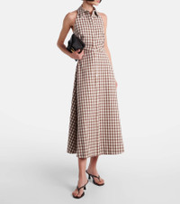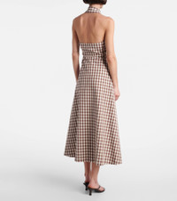 Crafted from cotton seersucker, Veronica Beard's Mackey midi dress features a flowing, A-line silhouette with a cinched waist. Complemented by a chic halterneck and open back, the design is complete with a charming all-over gingham print. Product Details - Material: 98% cotton, 2% elastane - Care instructions: dry clean - Made in the USA - Designer color name: Light Chickory/Dove - Item color: ivory, brown - Lining: 100% viscose - Closure: concealed zipper - Item number: P01067026 Size & Fit - True to size - Low back - Cinched waist - Non-stretchy fabric - The model seen in the picture is 178cm-5'10" and wearing a size US 4