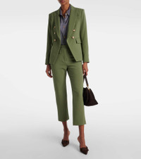 Product Details - Material: 63% polyester, 27% viscose, 7% cotton, 3% elastane - Care instructions: dry clean - Made in the USA - Designer color name: Stone Army - Buttoned cuffs - Closure: buttoned front - Pockets: flap pockets, breast pocket - Shoulder pads - Lining: 96% polyester, 4% elastane - Item number: P01019874 Size & Fit - True to size - Shoulder pad inserts - Cinched waist - Non-stretchy fabric - Falls to the hip - The model seen in the picture is 178cm-5'10" and wearing a size US 4