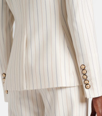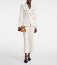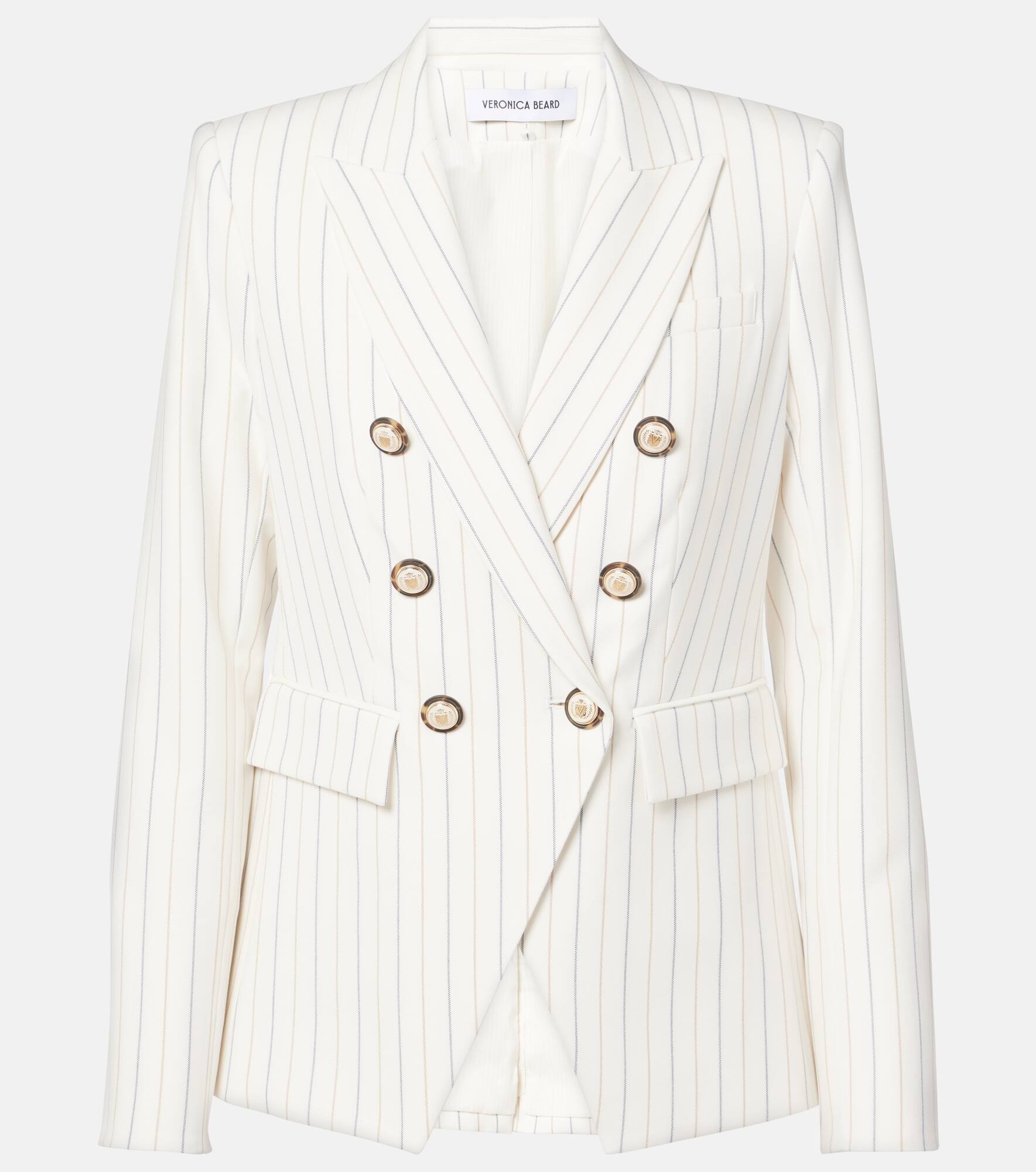 Product Details - Material: 67% polyester, 29% viscose, 4% elastane - Care instructions: dry clean - Made in the USA - Designer color name: Dove Multi - Closure: double-breasted (six buttons) - Lining: 96% polyester, 4% elastane - Item number: P01016911 Size & Fit - True to size - Shoulder pad inserts - Cinched waist - Non-stretchy fabric - Falls to the hip - The model seen in the picture is 178cm-5'10" and wearing a size US 4