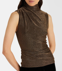Veronica Beard's low-effort, high-impact separates find the perfect balance between casual and chic. The Mylie top is crafted from jersey with a glittery finish and is complete with a warm mockneck. Product Details - Material: 77% polyamide, 21% metallic fibres, 2% elastane - Care instructions: machine wash at 30 degrees - Made in Vietnam - Designer color name: Gold - Item color: gold - Collar: mockneck - Item number: P01113810 Size & Fit - True to size - Fitted - Stretchy fabric - Falls to the hip - The model seen in the picture is 178cm-5'10" and wearing a size XS