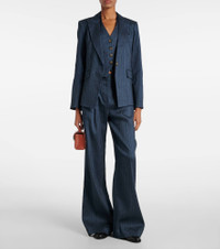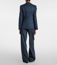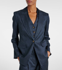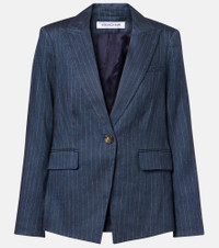 Veronica Beard masters effortless polish with the Obie blazer, a modern cropped silhouette rendered in a linen-blend with a denim effect. Finished with refined pinstripes, the piece perfectly captures the brand’s casual-meets-chic ethos. Product Details - Material: 58% linen, 40% viscose, 2% elastane - Care instructions: dry clean - Made in Vietnam - Designer color name: Blue/Dove - Item color: blue - Lining: 100% viscose - Lining II: 95% polyester, 5% elastane - Closure: buttoned front - Pockets: flap pockets, angled chest pocket - Peak lapel - Vent: single - Item number: P01097601 Size & Fit - True to size - Shoulder pad inserts - Cinched waist - Non-stretchy fabric - Falls below the hip - The model seen in the picture is 178cm-5'10" and wearing a size US 4