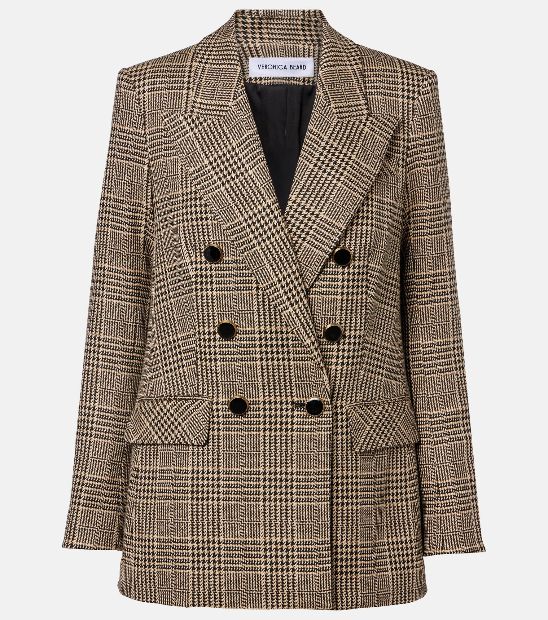 Veronica Beard's low-effort, high-impact separates find the perfect balance between casual and chic. The Rhys blazer is tailored to a double-breasted silhouette with padded shoulders and a refined Houndstooth pattern. Product Details - Material: 64% polyester, 33% viscose, 3% elastane - Care instructions: dry clean - Made in the USA - Designer color name: Black Multi - Item color: black, beige - Lining: 96% polyester, 4% elastane - Peak lapel - Pockets: flap pockets - Shoulder pads - Closure: double-breasted (six buttons) - Vent: double - Item number: P01113797 Size & Fit - True to size - Shoulder pad inserts - Designed for a loose fit - Non-stretchy fabric - Falls below the hip - slit length 23cm-9" - The model seen in the picture is 178cm-5'10" and wearing a size US 4