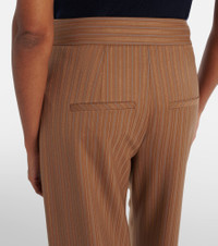 Veronica Beard's low-effort, high-impact separates find the perfect balance between casual and chic. The Rimini pants feature a classic wide-leg silhouette with crisp front pleats and an all-over pinstripe pattern. Product Details - Material: 67% polyester, 29% viscose, 4% elastane - Care instructions: dry clean - Made in Vietnam - Color: brown - Designer color name: Malt Multi - Lining: 100% polyester - Closure: zipper fly, button and hook fastenings - Pockets: slant pockets, back pockets - Item number: P01142598 Size & Fit - True to size - Non-stretchy fabric - Wide-leg - High-waisted - The model seen in the picture is 178cm-5'10" and wearing a size US 4