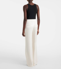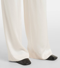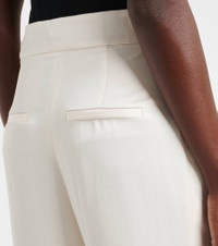 Product Details - Material: 72% acetate, 28% polyester - Care instructions: dry clean - Made in the USA - Designer color name: Dove - Closure: zip, hook, and button fastening - Lining: 100% polyester - Pockets: back pockets - Item number: P01016917 Size & Fit - True to size - Non-stretchy fabric - Wide-leg - High-rise - The model seen in the picture is 178cm-5'10" and wearing a size US 4