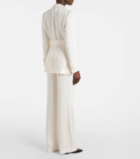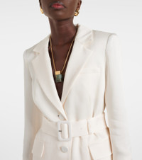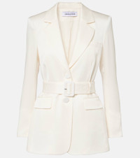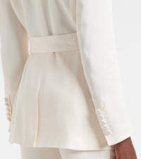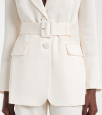 Product Details - Material: 72% acetate, 28% polyester - Care instructions: dry clean - Made in the USA - Designer color name: Dove - Lining: 100% cupro - Closure: single-breasted (two buttons) - Pockets: flap pockets - Item number: P01016916 Size & Fit - True to size - Shoulder pad inserts - Loose fit, comes with belt - Non-stretchy fabric - Falls below the hip - The model seen in the picture is 178cm-5'10" and wearing a size US 4