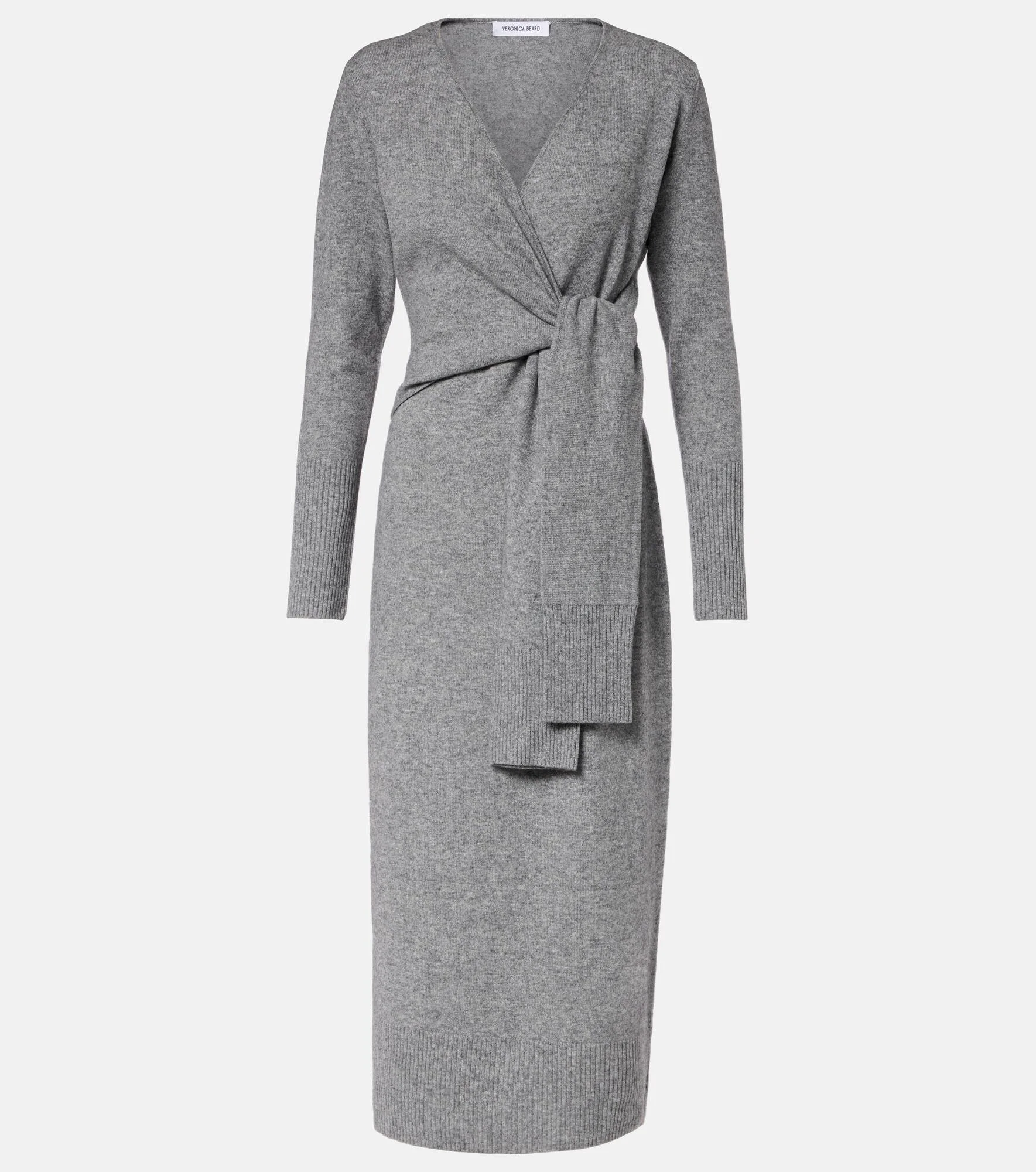 The Salomez wrap midi dress from Veronica Beard, in a grey wool and cashmere blend, features long sleeves, a V-neckline, ribbed trims, and side slits for versatile, effortless day-to-evening style. Product Details - Material: 70% wool, 30% cashmere - Care instructions: dry clean - Made in China - Color: grey - Designer color name: Medium Heather Grey - Item color: gray - Self-tie belt - Cuff: ribbed - Short vent - Hem: ribbed - Item number: P01142637 Size & Fit - True to size - Fitted - Stretchy fabric - The model seen in the picture is 178cm-5'10" and wearing a size XS