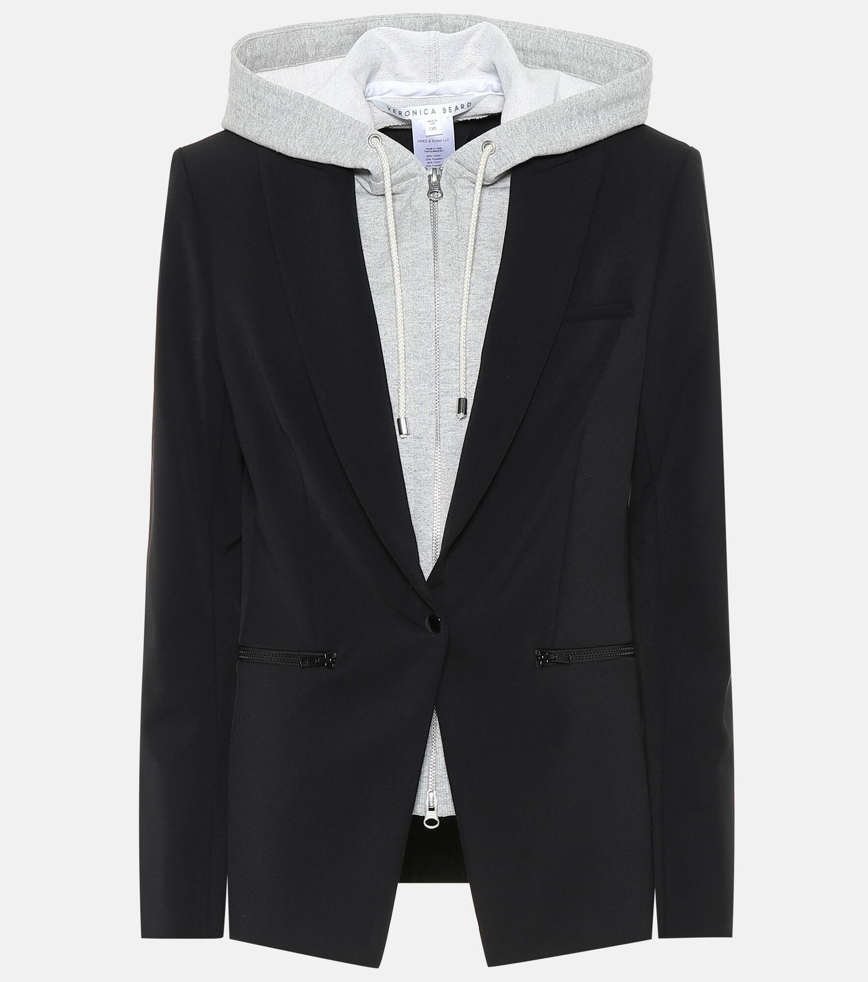 Crafted from a wrinkle-resistant nylon-blend, the Scuba Dickey jacket from Veronica Beard is equal parts tailored and casual. The design features zip pockets and snap closures, and is defined by a unique hoodie lining which lends a relaxed silhouette to the style. Product Details - Material: 86% polyester, 14% elastane - Made in the USA - Care instructions: dry clean - Designer color name: Black - Pockets: zipped pockets - Detachable hood - Item number: P00387621 Size & Fit - True to size - Shoulder pad inserts - Cinched waist - Mid-weight material - Falls to the hip - The model seen in the picture is 178cm-5'10" and wearing a size US 4