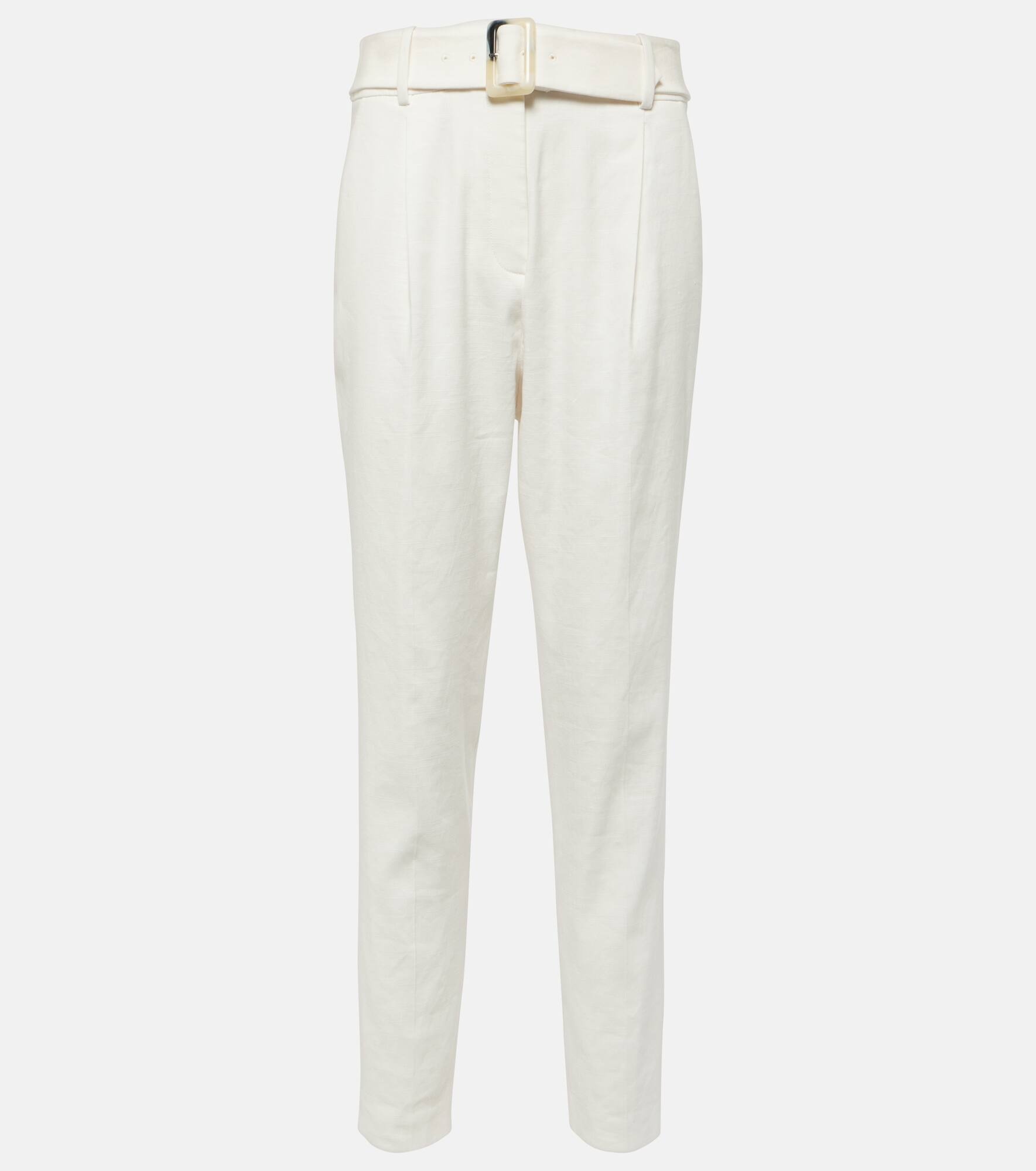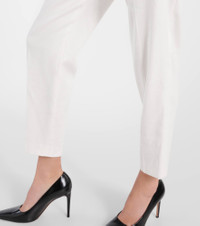 Product Details - Material: 55% linen, 43% viscose, 2% elastane - Care instructions: dry clean - Made in Vietnam - Designer color name: Off White - Pockets: side slit pockets, back pockets - Attached belt - Belt loops - Lining: 100% polyester - Item number: P00915433 Size & Fit - True to size - Non-stretchy fabric - Tapered leg - High-waisted - The model seen in the picture is 178cm-5'10" and wearing a size US 4