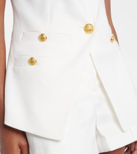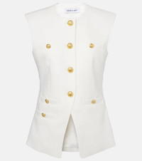 The Tamara vest from Veronica Beard is tailored from stretch linen-blend and defined by an angled cutaway hem. Gold-toned crest buttons and four welt pockets complete the sleek, structured silhouette. Product Details - Material: 53% linen, 29% polyester, 16% viscose, 2% elastane - Care instructions: dry clean - Made in the USA - Designer color name: Off White - Item color: ivory - Closure: buttoned front - Pockets: buttoned pockets, breast pockets - Lining: 100% polyester - Item number: P01067030 Size & Fit - True to size - Shoulder pad inserts - Cinched waist - Non-stretchy fabric - Falls to the hip - slit length 17cm-6.5" - The model seen in the picture is 178cm-5'10" and wearing a size US 4