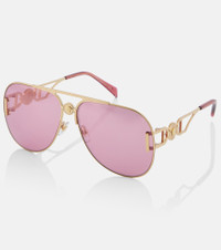 View life through the rose-tinted lenses of these sunglasses from Versace. The gold-framed aviator design is elevated by the signature Medusa head which adorns the temples and bridge. Product Details - Frame color: gold - Frame material: metal - Lens color: pink - Lens type: tinted lenses - comes with cleaning cloth - comes in a hard case - comes with a presentation box - The color of the case may vary - Made in Italy - Item number: P00798092 Size & Fit - Lens width: 63mm-2.5" - Bridge size: 13mm-0.5" - Earpiece length: 145mm-5.7"