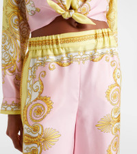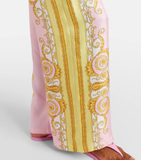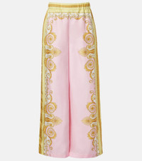 Boasting Versace's vibrant Barocco Foulard print, these pants are made from lustrous silk twill for a fluid drape. They feature a relaxed wide-leg silhouette and an elasticated waistband. Product Details - Material: 100% silk - Care instructions: dry clean - Made in Italy - Designer color name: Pale Yellow+Rose Quartz - Item color: yellow, pink - Lining: 100% silk - Elasticated waistband - Pockets: side slit pockets - Item number: P01129239 Size & Fit - True to size - Semi-sheer - Elasticated waist - Non-stretchy fabric - Wide-leg - High-waisted - The model seen in the picture is 178cm-5'10" and wearing a size IT 40