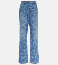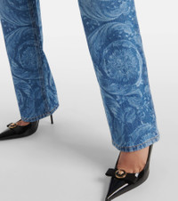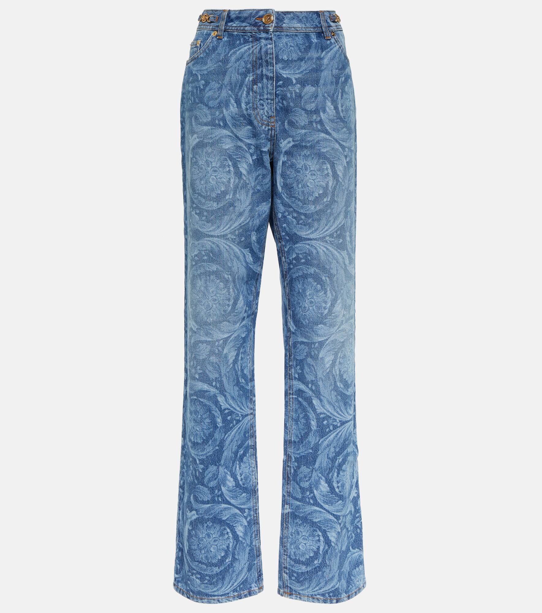 Product Details - Material: 100% cotton - Care instructions: machine wash at 30 degrees - Made in Italy - Designer color name: Medium Blue - Belt loops - Pockets: side slit pockets, back pockets - Material II: 100% calf leather - Lining: 65% polyester, 35% cotton - Item number: P00903386 Size & Fit - True to size - Non-stretchy fabric - Straight leg - High-rise - The model seen in the picture is 178cm-5'10" and wearing a size 26