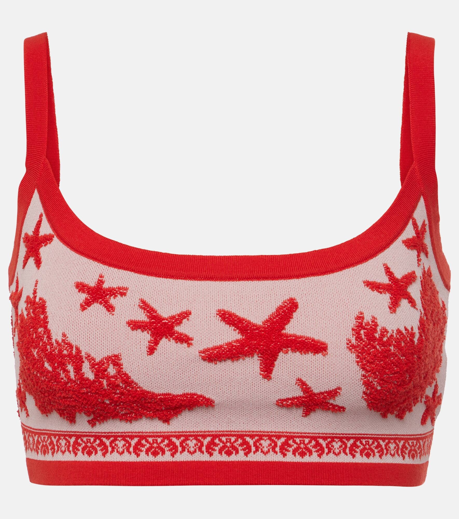 Cotton-blend jacquard crop top