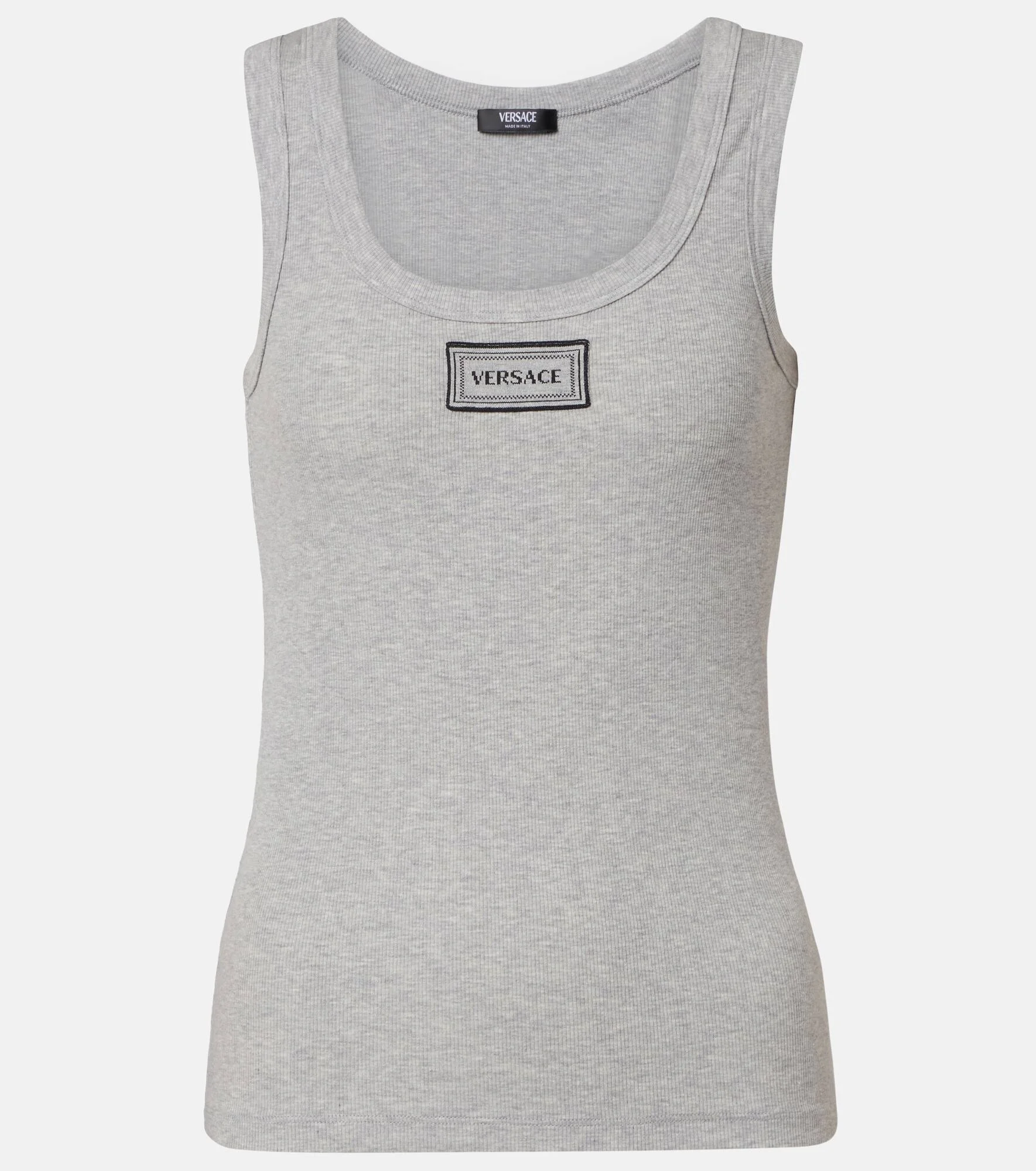 Embrace timeless glamour with this design from Versace. This grey-hued top is crafted in Italy from a cotton blend and features a sleeveless silhouette. Product Details - Material: 97% cotton, 3% elastane - Care instructions: dry clean - Made in Italy - Designer color name: Grey Melange - Item color: gray - Item number: P01129283 Size & Fit - True to size - Fitted - Stretchy fabric - Falls to the hip - Height of model is 175cm-69" and wears a size IT 40