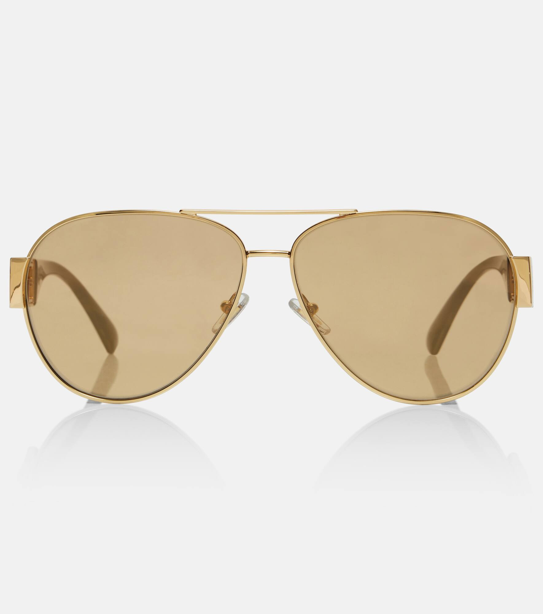There’s no disputing Versace’s status as one of the industry’s most revered brands. These aviator sunglasses have gold-toned wire frames with the signature Greca detailing at the temples, inspired by the ornate decorations of Ancient Greece. Product Details - Frame material: metal, acetate - Frame color: gold - Lens filter category 2 - Lens color: yellow - Made in Italy - Includes: logo-embossed hard case , case, cleaning cloth - The color of the case may vary - Item number: P01121376 Size & Fit - Lens width: 61mm-2.4" - Bridge size: 13mm-0.5" - Earpiece length: 145mm-5.7"