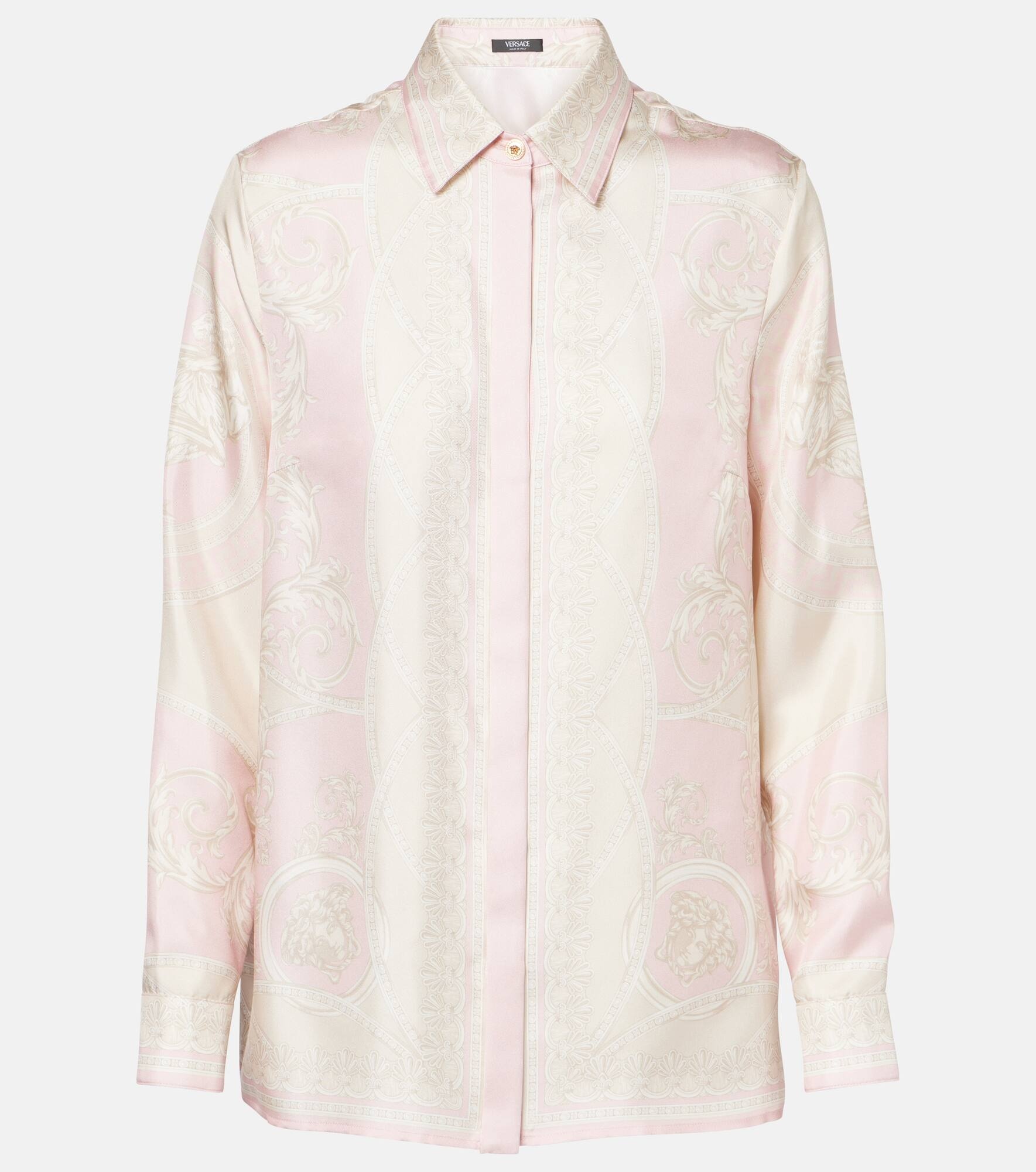 Product Details - Material: 100% silk - Care instructions: hand wash - Made in Italy - Designer color name: Pastel Pink + Champagne - Collar: classic (Straight point) - Closure: buttoned front - Item number: P01008432 Size & Fit - True to size - Straight fit - Non-stretchy fabric - Falls below the hip - The model seen in the picture is 178cm-5'10" and wearing a size IT 40