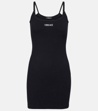 Versace presents a refined wardrobe staple with this cotton-blend black minidress. Cut for a close fit with slender straps, it features a minimalist silhouette accented by the house’s signature logo at the neckline. Product Details - Material: 95% cotton, 5% elastane - Care instructions: dry clean - Made in Italy - Designer color name: Black - Item color: black - Embroidery: 100% polyester - Item number: P01069635 Size & Fit - True to size - Fitted - Stretchy fabric - Height of model is 174cm-68.5" and wears a size 1