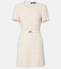 Belted Metallic Cotton-blend Tweed Mini Dress
