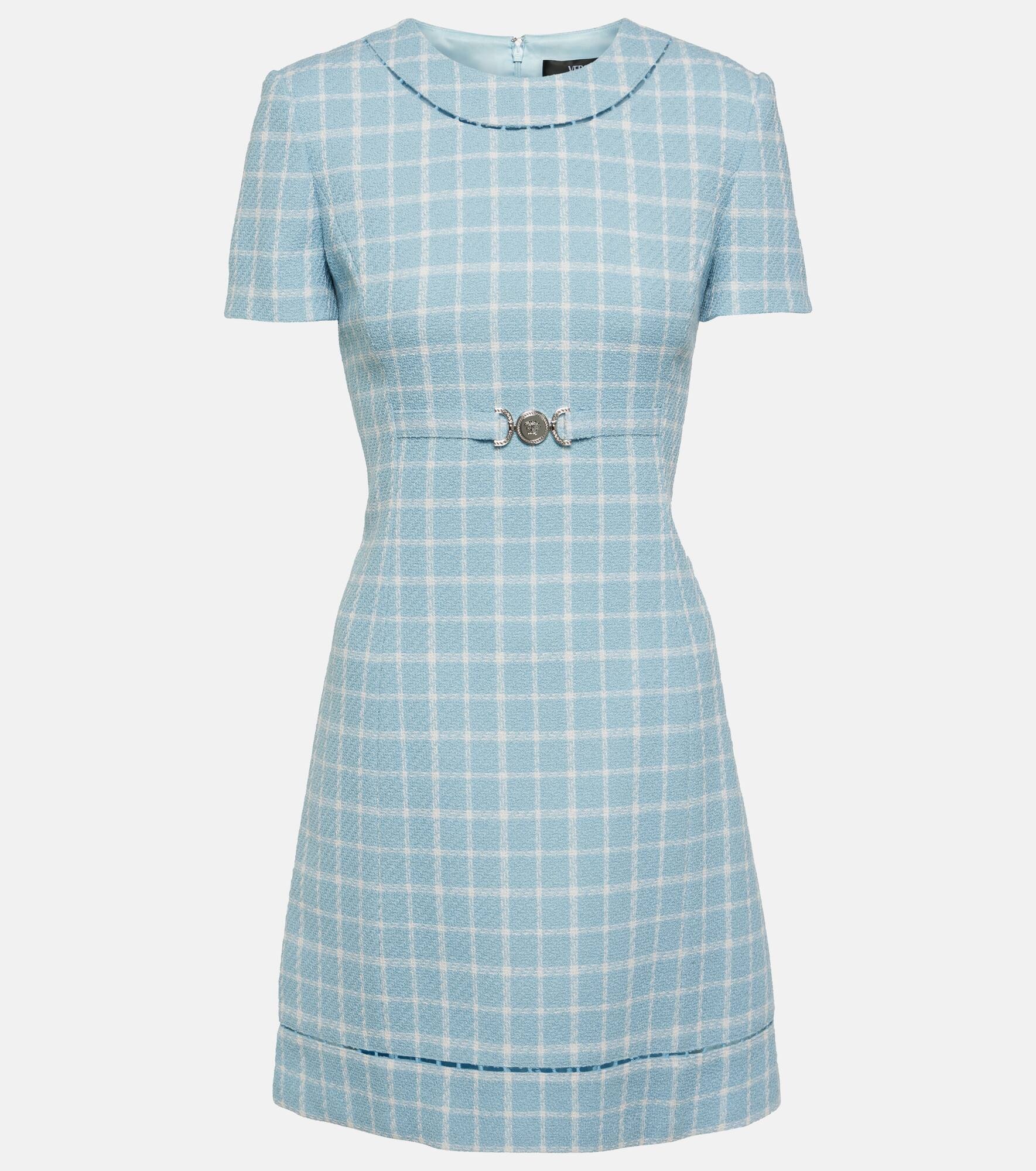 Product Details - Material: 80% wool, 11% polyamide, 9% polyester - Care instructions: dry clean - Made in Italy - Designer color name: Pastel Blue+White - Lining: 100% cupro - Trim: 97% polyester, 3% other fibres - Closure: zipped back - Item number: P00916887 Size & Fit - Fits large to size - we recommend trying one size smaller - Cinched waist - Non-stretchy fabric - The model seen in the picture is 178cm-5'10" and wearing a size 38