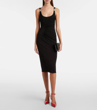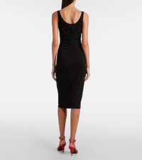 This cocktail dress is cut from crepe jersey and presented in a midi-length silhouette. The design is defined by a low-cut V-neckline and gathered detailing on the front, accented by Versace's signature silver-toned Medusa hardware. Product Details - Material: 95% viscose, 5% elastane - Care instructions: dry clean - Made in Italy - Designer color name: Black - Item color: black - Closure: concealed zipped side - Hardware color: silver - Item number: P01129244 Size & Fit - True to size - Fitted - Stretchy fabric - Height of model is 178cm-70" and wears a size IT 40
