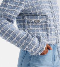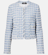 Crafted from cotton-blend tweed, this jacket from Versace features a cropped length with a zipped front. The sophisticated design is complete with the Maison's iconic silver-tone Medusa embellishments at the pockets. Product Details - Material: 58% cotton, 29% polyester, 10% acrylic, 2% other fibres, 1% elastane - Care instructions: dry clean - Made in Italy - Designer color name: Light Indigo - Item color: blue - Hardware color: silver - Lining: 100% cupro - Closure: zipped front - Pockets: patch pockets - Fully lined - Item number: P01069666 Size & Fit - True to size - Straight fit - Non-stretchy fabric - Slightly cropped - Height of model is 175cm-69" and wears a size IT 40