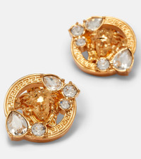 Inspired by Greek mythology, the Medusa head has become the ultimate signifier of the house of Versace. These gold-toned earrings feature the brand's Greca motif and are complete with dazzling crystal embellishments. Product Details - Material: metal, crystals - Made in Italy - Item color: gold - Closure: butterfly-back fastening - Includes: presentation box - Item number: P01129129 Size & Fit - Length 2cm-1" - Width 2cm-1"