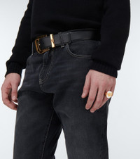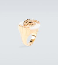 Refresh your accessories collection with this mother-of-pearl and gold-toned brass ring from Versace. Crafted in Italy, the design features subtle Greca detailing and a Medusa charm as a nod to theater and opera. Product Details - Material: brass - Made in Italy - Item number: P00757014 Size & Fit - Max. width 2cm-1"