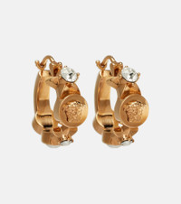 Inspired by Greek mythology, the Medusa head has become the ultimate signifier of the house of Versace. The signature emblem now features on these small hoop earrings, flanked by crystal embellishments. Product Details - Material: metal - Made in Italy - Item color: gold, silver - Closure: hook - Includes: box - Item number: P01079133 Size & Fit - Width 0.8cm-0.5" - Inner diameter 1.2cm-0.5"