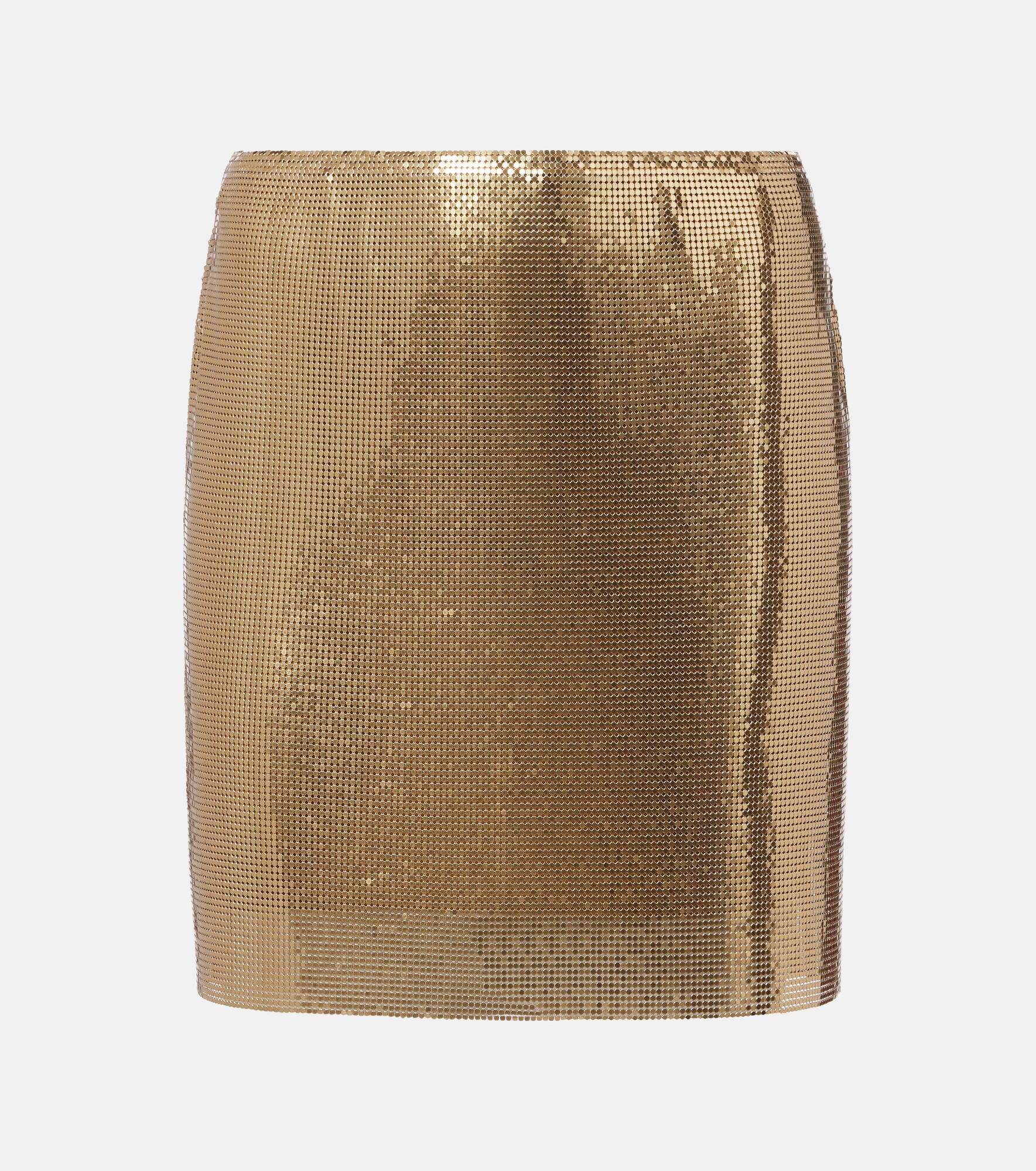 Versace brings its signature glamour to modern silhouettes with this metallic mesh miniskirt. Cast in a radiant gold tone, the design captures the house’s bold spirit, making it a striking choice for statement evening looks. Product Details - Material: 100% metal - Care instructions: specialist clean - Made in Italy - Designer color name: Gold - Item color: gold - Lining: 75% acetate, 25% silk - Closure: zipped back - Fully lined - Item number: P01069671 Size & Fit - Fits large to size - we recommend trying one size smaller - Non-stretchy fabric - Sits low on the hips - Height of model is 174cm-68.5" and wears a size IT 38